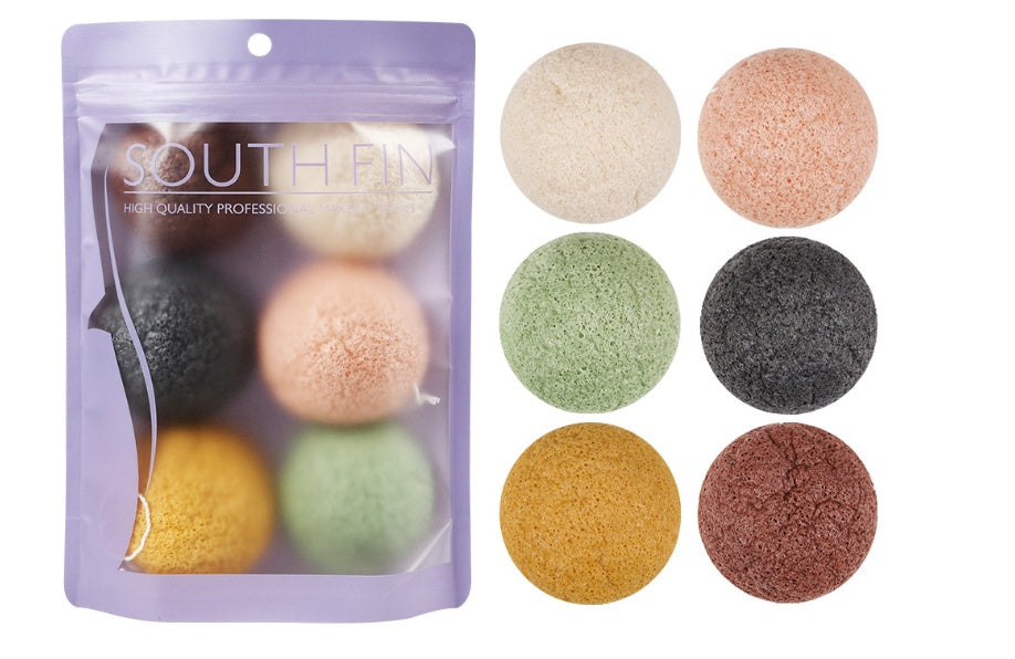 Environmentally Friendly Biodegradable Plant Konjac CottonFace Wash and Cleansing Cotton Bag Dry 6 Pack Set